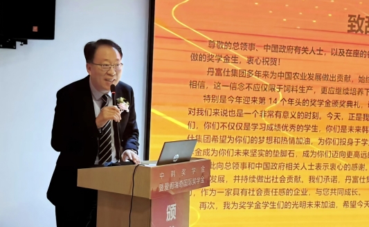 爱阁瑞奇国际丹富仕董事长金精九在颁发仪式上表示,过去一个月内,企业通过学校、机构和团体推荐的方式,选拔出一批具有良好品行和学习成绩的优秀学生。他强调,企业连续14年坚持开展奖学金公益项目,“正是对中韩优秀青年坚持不懈的信任与投资,才迎来了今日丰硕的成果。未来企业也将继续致力于推动中国畜牧业的可持续发展,积极履行社会责任。”